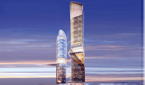 Two hi-rise buildings composed of two towers on common 3 podiums, ground and 2 basements floors. The first tower is a serviced apartments tower consisting of 58 floors (roof podium, 42 serviced apartments, health club, pool service, swimming pool, sky lobby reception, all day restaurant, 2 mechanical, and top roof floors). The second tower is a hotel tower consisting of 56 floors (roof podium, 33 hotel rooms, health club, pool service, swimming pool, 2 sky lobbies, 2 restaurants, 3 mechanical, presidential suites, executive lounge, 2 sky lounges, and top roof floors).